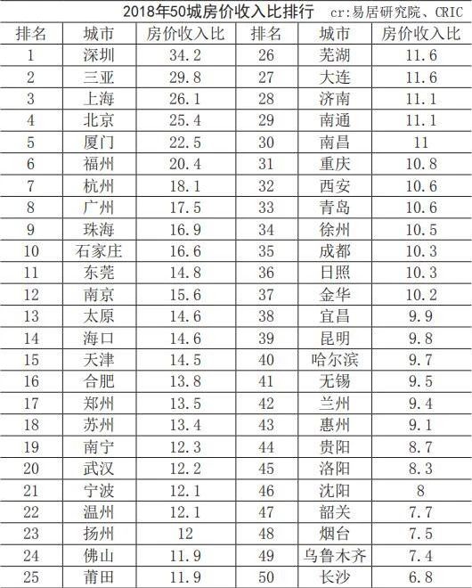 首先,纵观中国市场,对老百姓而言很多人是住不起房子的。而纵观国际市场,合理的住房购买年限为3~6年,这就意味着消费者以3~6年的家庭收入就能买得起房,发展中国家可以扩展到6~9年。然而,对应到中国市场的情况通过下表可以发现,深圳需要34.2年,三亚需要29.8年。这便意味着,中国的房地产情况已经到了普通家庭短时间内根本难以购买住房,甚至影响到国家安定。