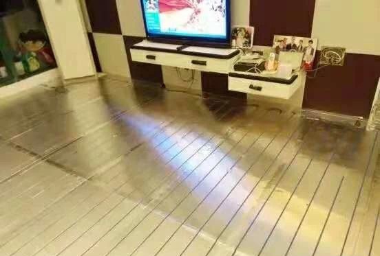 第2点;首先它的结构,采用的是铝板型干式地暖模块,上面铝板层,中间是隔热反射布下面是高密度环保挤塑板层,每平方承重20顿以上,水管是嵌到模块管槽中的,通过铝板快速传热和散热,上面无需水泥找平,直接铺设地暖专用地板,所以它首先解决了层高问题。