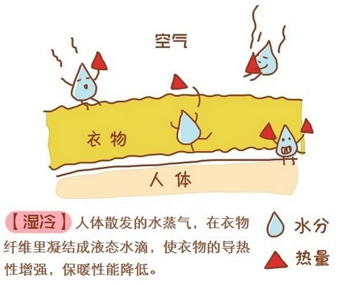 首先得从“湿冷”的形成原因说起。冬天感觉“湿冷”主要是因为人体散发的水蒸气,在衣物纤维里凝结成液态水滴(以脚指、手指处最为严重),使衣物的导热性增强,保暖性能降低。