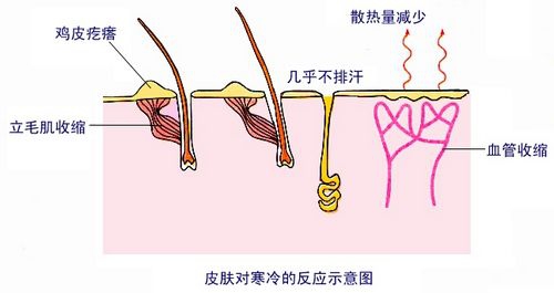 图:人体在寒冷环境下排汗量减少