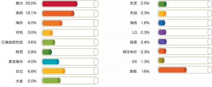 在竞争激烈的重庆中央空调市场,国产品牌仍是主力。格力、美的、海尔在重庆均设有工厂,因此在项目开拓和渠道布局上有着先天优势,占据了较高的市场份额;表现亮眼的还有海信、奥克斯,在2019年发力明显;天加、雅士则在净化领域屡有斩获,品牌影响力与日俱增。