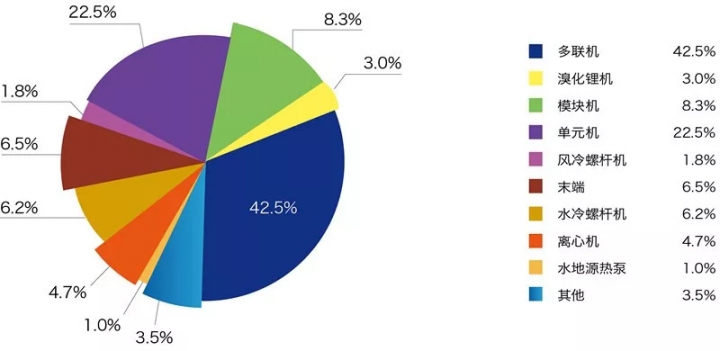 从产品类别来看,多联机和单元机仍是重庆家装零售市场上的主流产品,尽管多联机略有上升,但并未呈现出强劲势头,反而重庆因为受到网红效益影响,餐饮、酒店、商铺、超市等领域为单元机提供发力方向;伴随着中小型项目的逐渐增多,模块机产品增幅较大,成为重庆市场的一大亮点;风冷螺杆由于基数较小,延续良好的发展势头,在1-6月抢占了更多市场份额,与之对应的是水冷螺杆的逐步下滑趋势;磁悬浮离心机产品在改造项目上应用较多;此外,溴化锂、水地源热泵产品在民用市场品牌力量趋于保守,市场推动力量不足,没有实现更进一步的突破。