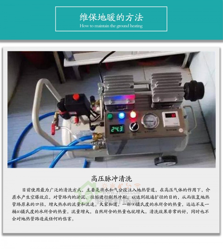 水地暖的清洗保养时间,不管是采暖前,采暖中,采暖后都是可以的。采暖前清洗,可以保证供暖期间的正常使用;采暖中清洗,可以直观感受到对比;但采暖后清洗,则最为重要,因为细菌在春夏季的繁殖和再生是最快速的,所以从健康的角度,更建议采暖季后进行清洗保养。