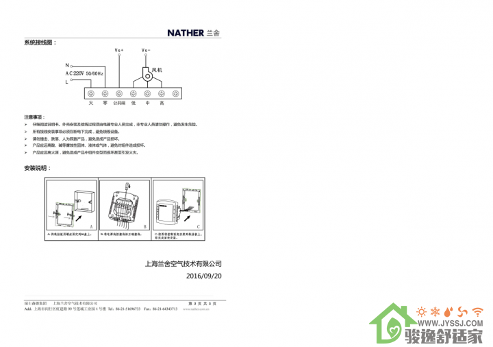 兰舍新风KD-1线控器使用说明书