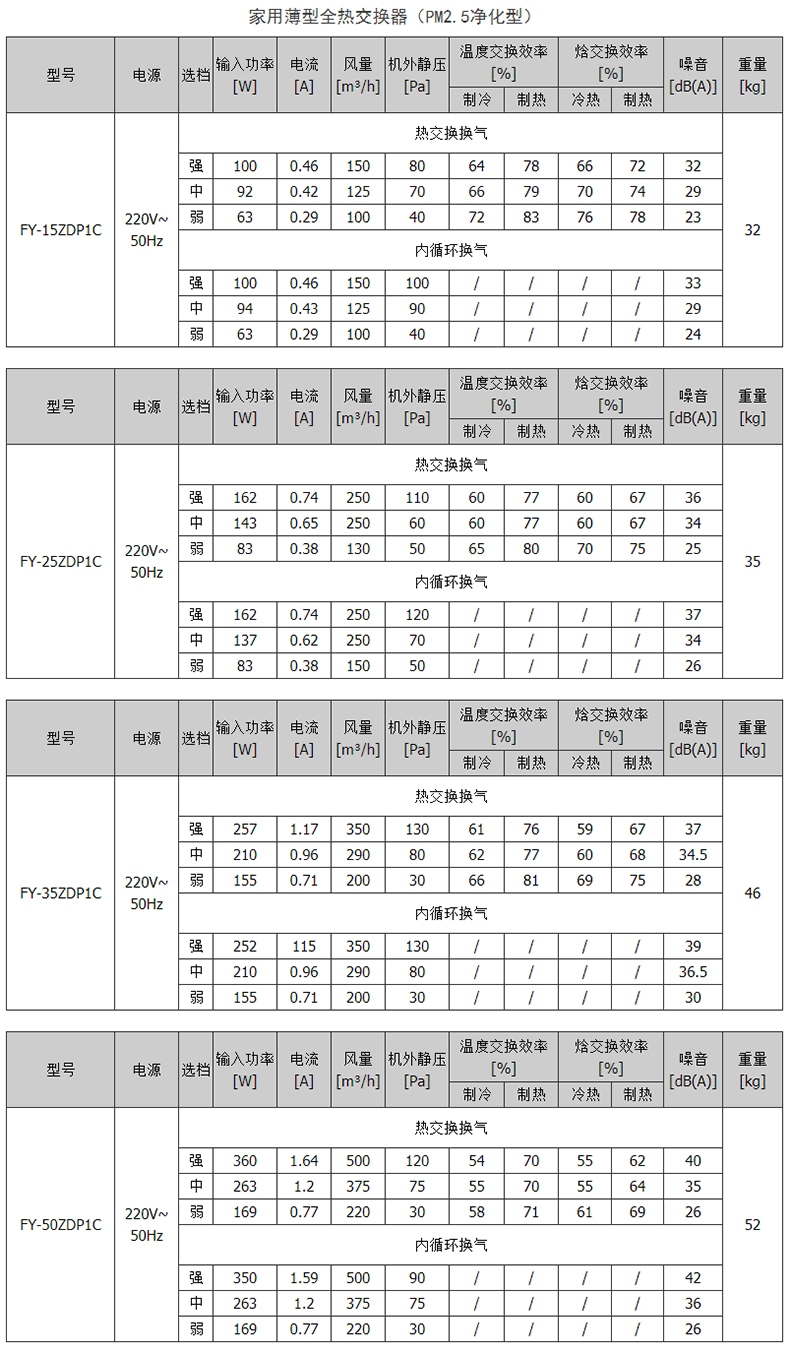 松下全热交换机 FY-15ZDP1C PM2.5高效过滤/H12